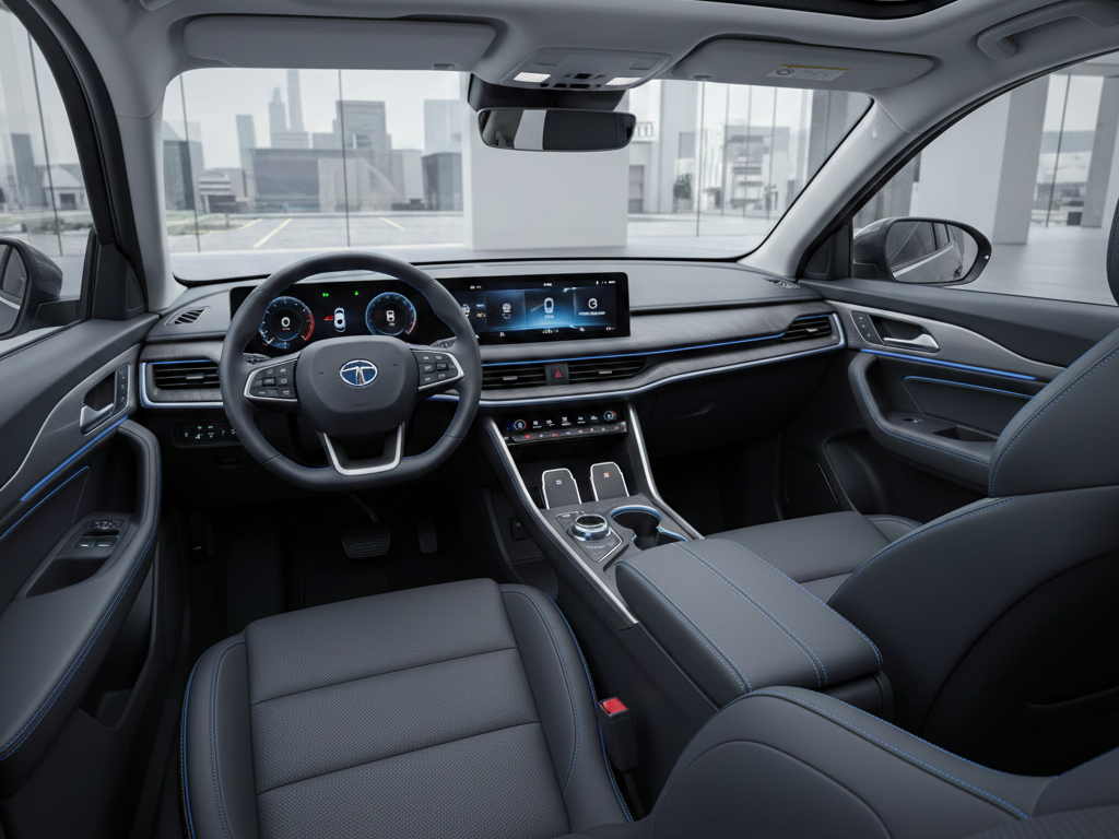 Inside, the Tata Harrier 2026 interior is designed to be comfortable, modern, and tech‑rich. The seats are supportive and pleasant for both short city trips and long highway tours. The cabin space feels open and premium thanks to well‑selected materials and thoughtful design.